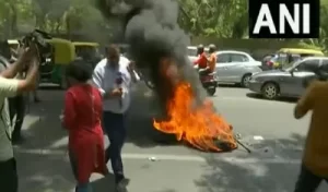 ED दफ्तर के बाहर कांग्रेस का प्रदर्शन, टायर में लगाई आग, अधीर रंजन ने पूछा- क्या हम आतंकवादी हैं?