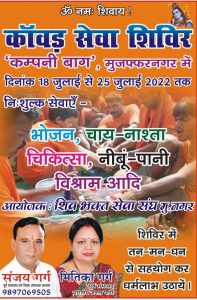 शिव भक्त सेवा संघ मुजफ्फरनगर द्वारा नि:शुल्क विशाल कावड सेवा शिविर