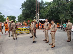 पुलिस अधीक्षक नगर व क्षेत्राधिकारी कांवड़ द्वारा पुलिस बल के साथ किया गया कांवड़ मार्ग का निरीक्षण, दिये गये आवश्यक दिशा-निर्दश