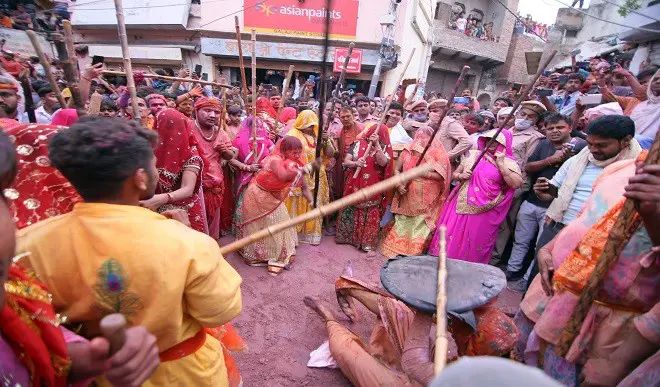 बरसाना में फुहारों के बीच लठमार होली, अलौकिक आनंद में डूबे श्रद्धालु
