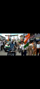 DM व SSP ने पुलिस में प्रशासनिक अधिकारियों के साथ कावडियो को की तिरंगे वितरित