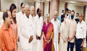नयी दिल्ली। प्रवर्तन निदेशालय (ईडी) ने नेशनल हेराल्ड मामले से जुड़ी धनशोधन जांच के तहत कांग्रेस नेता मल्लिकार्जुन खड़गे से सात घंटे से अधिक समय तक पूछताछ की। इस दौरान उनके आवास पर रात्रिभोजन का आयोजन किया गया। जहां पर उपराष्ट्रपति पद की उम्मीदवार मार्गरेट अल्वा, विपक्षी दलों के नेता और सांसद मौजूद रहे। एक वक्त के लिए ऐसा प्रतीत हुआ कि मेजबान मल्लिकार्जुन खड़गे खुद इस रात्रिभोज में नहीं पहुंच पाएंगे क्योंकि ईडी की कार्रवाई चल रही थी।