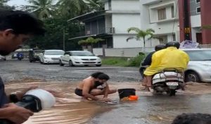 समाचार एजेंसी एएनआई ने मलप्पुरम के एक शख्स का वीडियो साझा किया। जिसमें लिखा कि मलप्पुरम में एक शख्स ने रास्ते में विधायक के सामने गंदे पानी से भरे गड्ढे में नहाया और योगा करके अनोखे अंदाज में सड़कों पर बने गड्ढों को लेकर अपना विरोध दर्ज कराया। दरअसल, इस अनोखे विरोध प्रदर्शन के माध्यम से शख्स अधिकारियों के संज्ञान में यह मामला लाना चाहता है।