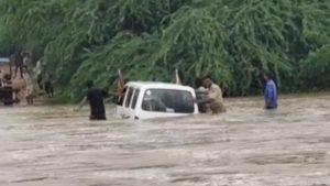 बताया गया है कि झमाझम बरसात के साथ खारी नदी में अचानक पानी बढ़ गया। नदी में उफान की वजह से सड़क पर आए पानी ने कार को अपनी चपेट में ले लिया। कार नदी में बह गई। कार में सवार लोगों ने जैसे-तैसे अपनी जान बचाई। मारुति कार के फंसने की सूचना पर चौकी प्रभारी भूराराम, कांस्टेबल रामनिवास बिश्नोई अन्य पुलिसकर्मियों के साथ मौके पर पहुंचे।