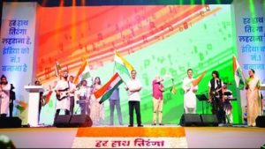 दिल्ली के त्यागराज स्टेडियम में आजादी की 75वीं वर्षगांठ की पूर्व संध्या पर दिल्ली सरकार ने ‘हर हाथ तिरंगा’ समारोह का आयोजन किया। देशभक्ति से लबरेज इस कार्यक्रम में बड़ी संख्या में लोगों ने शिरकत की। इस मौके पर मुख्यमंत्री अरविंद केजरीवाल ने कहा कि राजधानी में 500 तिरंगे फहराए हैं, अब दिल्ली तिरंगामय हो गई है।