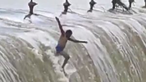 देखते ही देखते पानी में बह गया पुलिसकर्मी, पास खड़े लोग बनाते रहे वीडियो, नाले में डूबा बच्चा