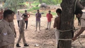 रात में महिला और उसके प्रेमी को परिजनों ने पकड़ा, पेड़ से बांधकर पीटा, पुलिस ने कराया मुक्त
