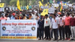 छत्तीसगढ़ सरकार के विभिन्न विभागों के संविदा कर्मचारी शुक्रवार को सभी 28 जिला मुख्यालयों पर एक दिन की हड़ताल करेंगे। ये संविदा कर्मचारी सेवा नियमित करने की मांग कर रहे हैं। छत्तीसगढ़ सर्व विभागीय संविदा कर्मचारी महासंघ के अध्यक्ष कौशलेश तिवारी ने कहा कि कांग्रेस सरकार के सौतेले व्यवहार के विरोध में 22 अगस्त से राज्य सरकार के 54 विभागों के 30 हजार से ज्यादा संविदा कर्मचारी तिरंगे से हाथ बांधकर काम कर रहे हैं। राष्ट्रीय स्वास्थ्य मिशन के संविदा कर्मचारी तिवारी ने कहा कि शुक्रवार को सभी संविदा कर्मचारी एक दिन की हड़ताल करेंगे और 28 जिला मुख्यालयों में ‘तिरंगा मार्च’ निकालेंगे। सत्तारूढ़ दल ने अपने चुनावी घोषणा पत्र में सभी संविदा सरकारी कर्मचारियों को नियमित करने का वादा किया था लेकिन वह ऐसा करने में विफल रही है। उन्होंने कहा कि शुक्रवार को संविदा कर्मचारी अपने-अपने क्षेत्र के स्थानीय प्रशासन, विधायकों और सांसदों को अपनी मांगों का ब्योरा देते हुए ज्ञापन सौंपेंगे। तिवारी ने कहा कि मांगे पूरी न होने पर वे अनिश्चितकालीन हड़ताल का सहारा लेंगे। संयोग से सरकारी विभागों के लगबघ 4.50 लाख नियमित कर्चमारी पहले ही 22 अगस्त से अनिश्चितकालीन हड़ताल पर हैं और सातवें वेतन आयोग की सिफारिशों के अनुसार 34 फीसदी महंगाई भत्ता (डीए) और मकान किराया भत्ता (एचआरए) की मांग कर रहे हैं।