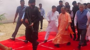 वैशाली की 41 वीं वाहिनी पीएसी में निर्माणाधीन बैरक के निरीक्षण के बाद सीएम योगी जल निगम गेस्ट हाउस पहुंचे और यहां करीब 20 मिनट रुकने के बाद सीएम हिंडन एयर फोर्स स्टेशन के लिए रवाना हुए।