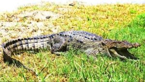 शनिवार रात नौ बजे ग्रामीण मंदिर में दाऊजी महाराज के दर्शन करने गए थे। वहां से लौटते समय तालाब के किनारे कुछ दिखाई दिया। टॉर्च की रोशनी से देख तो मगरमच्छ पड़ा था। लोगों ने तत्काल ग्राम प्रधान योगेंद्र पाल सिंह को जानकारी दी।