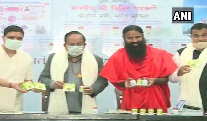 बाबा रामदेव ने लॉन्च की कोरोना वायरस की दवा, डॉ. हर्षवर्धन और नितिन गडकरी रहे मौजूद