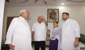 बिहार के मुख्यमंत्री नीतीश कुमार ने उपमुख्यमंत्री तेजस्वी यादव और राबड़ी देवी की मौजूदगी में राजद प्रमुख लालू प्रसाद यादव से उनके आवास पर मुलाकात की है। आज से नीतीश कुमार का दिल्ली दौरा भी शुरू हो रहा है। नीतीश के साथ जेडीयू के कुछ बड़े नेता भी दिल्ली आ रहे हैं। दिल्ली रवाना होने से पहले सीएम नीतीश कुमार ने मीडिया से बात करते हुए कहा कि मैंने लालू यादव से बात की है…मैं दिल्ली जाऊंगा, जहां मैं राष्ट्रपति और उपराष्ट्रपति से मिलूंगा। हम शाम को राहुल गांधी से मिलेंगे।