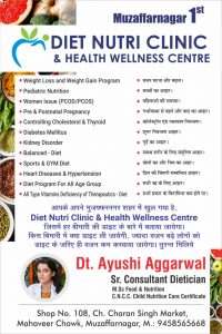 First Diet Nutri Clinic & Health Wellness Center (Chowdhary Charan Singh Market Mahaveer Chowk Muzaffarnagar) has opened in your own city, in which no one needs to go outside Muzaffarnagar. Your own in Muzaffarnagar The diet of every disease will be told. In which disease, what diet, how much and how to take. Overweight or weight loss, good diet and good mental and physical development of children, etc. For every disease good diet, meet well qualified senior dietician of your city Ayushi Aggarwal who will not let all of you stress stay. Hurry up because the festival and wedding season has started and it will happen. Everyone has to look good