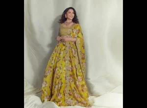 फेस्टिवल सीजन में रेड के अलावा महिलाएं ग्रीन और येलो कलर पहनना भी काफी पसंद करती हैं। ऐसे में आप माधुरी दीक्षित के इस येलो कलर लहंगे को आसानी से रिक्रिएट कर सकती हैं। उन्होंने इस लुक में येलो कलर के फ्लोरल लहंगे को पहना है, जिसमें ब्लाउज पर हैवी वर्क किया गया है और इसलिए करवाचौथ के दिन आप दोपहर के समय इस लहंगे को पहन सकती हैं।