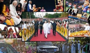 गुजरात विधानसभा चुनावों में अब कुछ ही महीने शेष रह गए हैं। ऐसे में प्रधानमंत्री नरेंद्र मोदी सूरत और भावनगर में रोड शो किया और नई परियोजनाओं और विकास कार्यों की शुरुआत की। पीएम मोदी ने अपने दो दिन के दौरे में तोहफों का पिटारा खोल दिया। इस दौरान पीएम मोदी ट्रेन में सफर करते भी नजर आए और जनता के दिल की बात जानने की भी कोशिश की। कभी गरबा कार्यक्रम में शिरकत की तो कभी नेशनल गेम्स के उद्घाटन कार्यक्रम में पहुंच गए। सड़कों पर रोड शो किया तो जनता को भी संबोधित किया। नवरात्रि के पावन मौके पर मां अंबा का आशीर्वाद लेना भी प्रधानमंत्री नहीं भूले। इसके साथ ही देश के लोगों की सेवा करने के लिए अपनी सरकार की प्रतिबद्धता को दोहराया। 2014 के बाद से गुजरात में और साथ ही राष्ट्रीय स्तर पर अपनी सरकारों के कार्यों का उल्लेख करते हुए पीएम मोदी ने पिछली सरकारों को जमकर निशाने पर भी लिया। प्रधानमंत्री ने सूरत और भावनगर में अपने संबोधन में राज्य के लोगों को “डबल इंजन” सरकारों के लाभों की याद दिलाया।