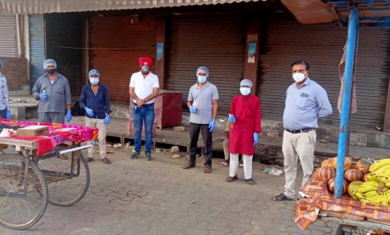 जैसा कि महामारी का दौर जारी है इसको देखते हुए प्रशासन द्वारा लॉकडाउन किया गया है जनता की सुविधाओं के लिए सब्जी फल फ्रूट आदि बेचने वाले गली मोहल्ले लगातार जनता की सुविधाओं के लिए जा रहे हैं देखा गया है कि कई ऐसे लोग भी हैं जो सब्जी फ्रूट बेचते हैं लेकिन मास्क,ग्लब्स सेनिटाइजर का निरंतर प्रयोग नहीं करते जिससे कम्युनिटी सप्राइ का खतरा हैं। इसी को देखते हुए आज मंडी एवम गांधी कॉलोनी में कई जगह पर फल सब्जी वालो को अखिल भारतीय हिन्दू शक्ति दल के राष्ट्रीय महासचिव अरुण प्रताप सिंह एवम स्वच्छ भारत मिशन (नगरीय) के डीपीएम सरदार बलजीत सिंह द्वारा आज मास्क,सैनिटाइजर, ग्लव्स, कैप आदि उपलब्ध करा कर उनको जागरूक भी किया गया कि कैसे करोना वायरस कम्युनिटी स्प्रेड होने से आप सबको बचा सकते हो गली मोहल्ले के लोगो को संक्रमण का खतरा कम किया जा सकता है।।