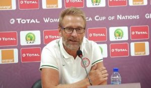 भारत के मुख्य कोच थॉमस डेनरबी ने फीफा महिला अंडर-17 विश्वकप फुटबॉल प्रतियोगिता के पहले मैच में करारी शिकस्त झेलने के बाद स्वीकार किया कि उनकी टीम का स्तर अमेरिकी टीम के जैसा नहीं है। भारतीय टीम मंगलवार को पहले मैच में अमेरिका से 0-8 से हार गई थी। डेनरबी का यह बयान उनके पिछले बयान से एकदम उलट है जब उन्होंने स्वीडन की अंडर-17 टीम के खिलाफ टूर्नामेंट से पहले खेले गए अभ्यास मैच में 1-3 से हार के बावजूद दावा किया था कि भारतीय टीम आयु वर्ग के टूर्नामेंट में किसी भी टीम को कड़ी चुनौती देने में सक्षम है।