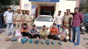 थाना नई मण्डी पुलिस द्वारा दौराने चेकिंग 05 शातिर चोर अभियुक्तगण गिरफ्तार। चोरी के 02 अभियोगों का सफल अनावरण। कब्जे से चोरी की गयी 10 बिजली की मोटर सहित अन्य माल, अवैध शस्त्र तथा घटना में प्रयुक्त कार बरामद