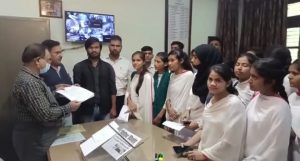 डी ए वी कॉलेज मुजफ्फरनगर के छात्रसंघ संयुक्तसचिव अमन जैन के नेतृत्व में बीएससी (बायोटेक्नोलॉजी) प्रथम वर्ष के द्वितीय सेमेस्टर के छात्र छात्राओं ने माँ शाकुम्भरी विश्वविद्यालय सहारनपुर के कुलसचिव के नाम प्राचार्य डॉ संजीव मित्तल को ज्ञापन सौंपा