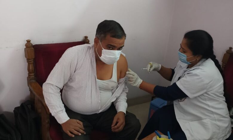 स्वास्थ्य विभाग के सौजन्य से अग्रवाल मार्केट में दवा व्यापारियों के लिए कोरोना वैक्सीन के कैंप का किया गया आयोजन