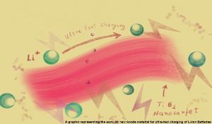 यह अध्ययन भारतीय प्रौद्योगिकी संस्थान (IIT) गांधीनगर के शोधकर्ताओं ने जापान एडवांस्ड इंस्टीट्यूट ऑफ साइंस एंड टेक्नोलॉजी (JAIST) के सहयोग से किया था। नई द्वि-आयामी (2डी) एनोड सामग्री को टाइटेनियम डाइबोराइड (TiB2) से प्राप्त नैनो शीट का उपयोग करके विकसित किया गया है, जो सैंडविच के ढेर जैसा दिखता है, जहां धातु के अणु बोरॉन की परतों के बीच मौजूद होते हैं। शोधकर्ताओं ने कहा कि इस नवाचार में प्रयोगशाला से वास्तविक जीवन में अनुवाद की क्षमता है।