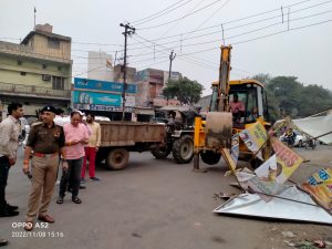 निर्वाचन आयोग द्वारा विधानसभा खतौली-15 के रिक्त हुए स्थान पर निर्वाचन की तिथि 05 दिसंबर 2022 घोषित किए जाने के उपरांत उप जिलाधिकारी खतौली श्री जीत सिंह राय एवं पुलिस क्षेत्रधिकारी श्री राकेश सिंह द्वारा विधानसभा क्षेत्र अंतर्गत समस्त राजनीतिक होर्डिंग्स एवं पोस्टर्स इत्यादि को आचार संहिता लागू होने के दृष्टिगत हटवाया गया।*