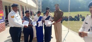 अवगत कराना है कि यातायात नियमों के प्रति जागरूकता एवं सुरक्षित परिवहन को प्रोत्साहित करने के उददेश्य से प्रत्येक वर्ष नवम्बर माह को यातायात माह के रूप में मनाया जाता है। इसी क्रम में आज दिनांक 12.11़.2022 को वरिष्ठ पुलिस अधीक्षक श्री विनीत जायसवाल महोदय के निर्देशन में प्रभारी यातायात मय यातायात पुलिस द्वारा डीएस पब्लिक स्कूल, मुजफ्फरनगर में कार्यक्रम आयोजित कर उपस्थित अध्यापकों एवं स्काउट कैडेटों को सुरक्षित परिवहन को प्रोत्साहन के उददेश्य से यातायात नियमों के प्रति जागरूक किया गया। कार्यक्रम के दौरान प्रभारी यातायात श्री रूप किशोर एवं यातायात उ0नि0 श्री इन्द्रजीत सिंह द्वारा सभी कैडेटों को यातायात नियमों का पालन कर प्रतिदिन होने वाले हादसों से बचाव की जानकारी दी गई एवं साथ ही सुरक्षित सफर तय करने के प्रति कैडेटों को जागरूक किया गया। प्रभारी यातायात द्वारा बताया गया कि वर्तमान में यातायात नियमों की अनदेखी के कारण सड़कों पर प्रतिदिन होने वाले हादसों में जनहानि हो रही है, जिसमें इन हादसों से हम अपना बचाव कर सकते हैं, यदि हम यातायात नियमों का पालन करते हुए सुरक्षित सफर के लिए जागरूक बनें।