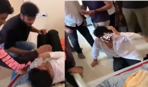 हैदराबाद के शंकरपल्ली में एक बिजनेस स्कूल में एक छात्र के पिटाई का वीडियो सामने आया। जिसके बाद से स्कूल प्रशासन में पूरी तरीके से हड़कंप मच गया। वीडियो में साफ तौर पर दिखाई दे रहा है कि कुछ छात्र हॉस्टल के अंदर एक छात्र की पिटाई कर रहे हैं। इतना ही नहीं, वहां एक धर्म विशेष के पक्ष में नारे लगाने के लिए भी फोर्स किया जा रहा है। आरोपियों की ओर से इस घटना का वीडियो बनाया गया है और उसे सोशल मीडिया पर वायरल किया गया। जिसके बाद मामला अब तूल पकड़ता जा रहा है। फिलहाल पुलिस हरकत में आ गई है और कॉलेज के 10 छात्रों पर एफआईआर करके पांच को गिरफ्तार भी कर लिया गया है। रैगिंग, मारपीट और छात्र को प्रताड़ित करने के मामले में कॉलेज में आरोपी छात्रों को संस्थान से निलंबित भी कर दिया है।
