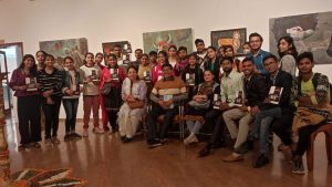 आज 15 नवंबर को श्री राम ग्रुप ऑफ कॉलेज मुजफ्फरनगर के चित्रकला विभाग से मयंक सैनी के निर्देशन में छात्र छात्राओं ने गैलरी का भ्रमण किया, गैलरी आकर छात्र छात्राओं ने प्रवीण सैनी से अपनी कला संबंधी जिज्ञासा को तृप्त किया। मुजफ्फरनगर से आज युवा चित्रकार नीशुदीप, मयंक सैनी, देवदयाल, सागर कल्याण, प्रांजल सैनी,अभिषेक, दीप्ति समेत 50 से अधिक कला छात्रों ने गैलरी आकर भ्रमण किया।