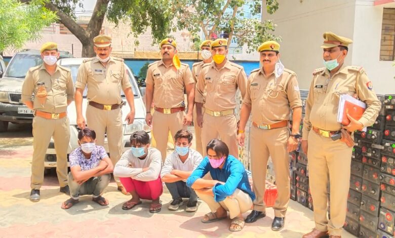अन्तर्राज्यीय बैटरी चोर गिरोह के 04 सदस्य गिरफ्तार, कब्जे से अवैध शस्त्र, कार, बैटरे एवं भारी मात्रा में टावर की बैटरी सेल बरामद