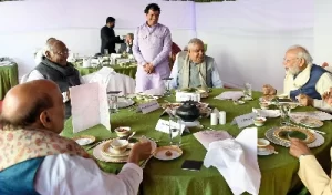आज सुबह से अगर राजनीति की बात करें तो जो मुद्दा सबसे ज्यादा गर्म रहा वह था, मल्लिकार्जुन खड़गे का वह बयान जिसमें उन्होंने भाजपा पर तंज कसा था। भाजपा के नेता भी जबरदस्त तरीके से मल्लिकार्जुन खड़गे पर हमलावर थे। भाजपा के नेताओं की ओर से माफी की मांग तक की गई। इसको लेकर संसद में तीखी नोकझोंक भी हुई। लेकिन दिन ढलने के साथ ही प्रधानमंत्री नरेंद्र मोदी और मलिकार्जुन खरगे एक ही टेबल पर एक साथ खाना खाते दिखाई दे दिए। अब सवाल यह था जब इतनी तल्खी थी तो फिर एक साथ नेता कैसे बैठे? यही तो लोकतंत्र की खूबसूरती है। यहां, राजनीति विचारों और मुद्दों पर होती है। दरअसल केंद्रीय कृषि मंत्री नरेंद्र सिंह तोमर ने सांसदों के लिए मोटा अनाज से तैयार लंच का प्रोग्राम रखा था।