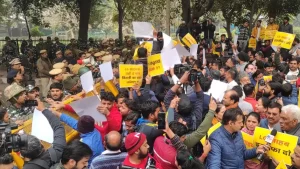 दिल्ली हिट एंड रन केसः एलजी हाउस के करीब AAP कार्यकर्ताओं का प्रदर्शन, कर रहे इस्तीफे की मांग