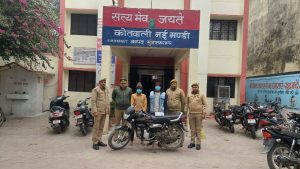 अवगत कराना है कि जनपद मुजफ्फरनगर में शातिर चोर/लुटेरे अभियुक्तगण की गिरफ्तारी हेतु श्रीमान वरिष्ठ पुलिस अधीक्षक श्री विनीत जायसवाल महोदय के निर्देशन में चलाए जा रहे अभियान के अन्तर्गत पुलिस अधीक्षक नगर व क्षेत्रधिकारी नई मण्डी के निकट पर्यवेक्षण तथा प्रभारी निरीक्षक थान नई मण्डी के कुशल नेतृत्व में दिनांक 08.01.2023 को थाना नई मण्डी पुलिस द्वारा मात्र 08 घण्टे के अन्दर मोबाईल लूट की घटना का सफल अनावरण करते हुए 02 शातिर लुटेरे अभियुक्तगण को माता मन्दिर के सामने अमित विहार कूकड़ा नाले से गिरफ्तार किया गया। अभियुक्तगण के कब्जे से लूटा गया 01 मोबाईल व घटना में प्रयुक्त 01 मोटरसाईकिल बरामद की गयी। अभियुक्तगण की गिरफ्तारी एवं बरामदगी के सम्बन्ध में थाना नई मण्डी पुलिस द्वारा अग्रिम आवश्यक वैधानिक कार्यवाही की जा रही है।