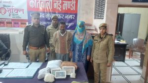 जनपद मुजफ्फरनगर के थाना नईमण्डी पुलिस द्वारा मादक पदार्थो को थैली में भरकर बेचने वाले 01 अभियुक्त व 01 अभियुक्ता गिरफ्तार, कब्जे से 02 किलो गांजा, 52 गांजे की पुडिया(वजन 260 ग्राम), 2162 खाली प्लास्टिक की थैलियां, 01 इलेक्ट्रानिक कांटा, 01 स्टेपलर व 41,900 रूपये नगद बरामद