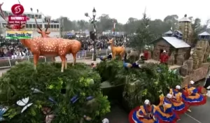 नयी दिल्ली। राष्ट्रीय राजधानी में कर्तव्य पथ पर गणतंत्र दिवस पर आयोजित परेड में उत्तराखंड की झांकी में वन्यजीवन और धार्मिक स्थलों को प्रदर्शित किया। उत्तराखंड की झांकी में जिम कार्बेट राष्ट्रीय उद्यान को दर्शाया गया जिसमें हिरण, राष्ट्रीय पक्षी मोर सहित कई तरह के पशु पक्षी विचरण करते नजर आए।