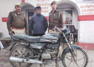 अवगत कराना है। कि जनपद मुजफ्फरनगर में शातिर वाहन चोर/लुटेरे अभियुक्तगण की गिरफ्तारी हेतु वरिष्ठ पुलिस अधीक्षक श्री संजीव सुमन महोदय द्वारा चलाये जा रहे अभियान के अन्तर्गत पुलिस अधीक्षक देहात के निर्देंशन में क्षेत्राधिकारी भोपा के निकट पर्यवेक्षण में थाना प्रभारी भोपा के कुशल नेतृत्व में दिनांक 05.02.2023 की रात्रि को थाना भोपा पुलिस द्वारा 01 वाहन चोर अभियुक्त को ग्राम बिलायत नगर कट से गिरफ्तार किया गया। अभियुक्त के कब्जे से चोरी की 01 मोटरसाईकिल मय फर्जी नम्बर प्लेट बरामद की गयी। अभियुक्त की गिरफ्तारी एंव बरामदगी के सम्बंध में थाना भोपा पुलिस द्वारा आवश्यक अग्रिम वैधानिक कार्यवाही की जा रही है।