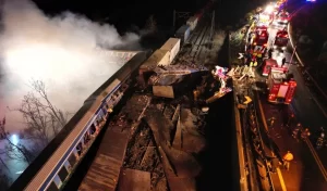 ग्रीस में मंगलवार और बुधवार की रात को एक पैसेंजर ट्रेन के एक मालगाड़ी से टकरा जाने से 32 लोगों की मौत हो गई और कम से कम 85 घायल हो गए। एपी न्यूज की एक रिपोर्ट में कहा गया है कि टेम्पे में हुई दुर्घटना के बाद ट्रेन के कई डिब्बे पटरी से उतर गए और कम से कम तीन में आग लग गई। थिसली क्षेत्र के गवर्नर कॉन्स्टेंटिनोस एगोरास्टोस ने स्थानीय समाचार एजेंसी स्काई टीवी को बताया कि टक्कर बहुत तेज थी। उन्होंने कहा कि यात्री ट्रेन के पहले चार डिब्बे पटरी से उतर गए, जबकि पहले दो डिब्बे लगभग पूरी तरह से नष्ट हो गए।