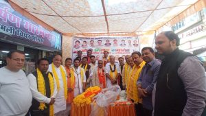 *सर्वप्रथम आए हुए अतिथियों का न्यू मंडी इकाई के पदाधिकारियों ने फूलो की माला,पटका और हरी सब्जियों की माला पहनाकर स्वागत किया गया।*