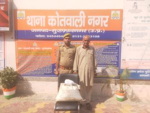 श्रीमान वरिष्ठ पुलिस अधीक्षक महोदय के निर्देशन व श्रीमान पुलिस अधीक्षक नगर महोदय के निकट पर्यवेक्षण मे तथा सहायक पुलिस अधीक्षक नगर / क्षेत्राधिकारी नगर महोदय के नेतृत्व में जनपद मे नशे के विरूद्ध चलाये जा रहे अभियान के दौरान एक व्यक्ति जो काफी दिनो से नशे की छोटी- छोटी पुडिया बनाकर 100 – 200 रूपये मे घूम घूम कर छोटे – छोटे बच्चो व लोगों को बेच रहा था जिस पर थाना को0नगर पुलिस द्वारा नजर रखी जा रही थी । जिसे दिनांक 11.03.23 को 40 फुटा रोड से A TO Z रोड से चैकिंग के दौरान अभि0-विनोद शर्मा पुत्र बल्लू सिंह निवासी गंदे कुए के पास मौ0 द0 कृष्णापुरी थाना को0नगर मु0नगर को मय नाजायज नशीला पदार्थ कुल 4.5 किलो डोडा सहित गिरफ्तार किया गया । अभियुक्त के विरूद्ध अभियोग पंजीकृत कर जेल भेजा जा रहा है । अभियुक्त पूर्व मे भी नशे के कारोबार में जेल जा चुका है ।