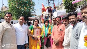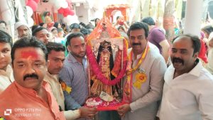 मुज़फ्फरनगर- रामलीला टीला रॉड पर स्तिथ सिद्धपीठ महामाई मंदिर में पूजा अर्चना के लिए पहुंची केंद्रीय मंत्री संजीव बालियान की धर्म पत्नी सुनीता बालियान एवं भाजपा जिलाध्यक्ष विजय शुक्ला! पूजा अर्चना के बाद शोभा यात्रा हुईं शुरू, महामाई जी की शोभायात्रा अध्यक्ष कमल बिलटोरिया के नेतृत्व में बहुत ही धूमधाम से निकाली जा रही है , इस मौके पर वरिष्ठ भाजपा नेता कुलदीप गोयल, भाजपा जिला उपाध्यक्ष संजय गर्ग,बीजेपी जिला मंत्री सुधीर खटीक, भाजपा नेता सुनील दर्शन, बीजेपी नेता कुलदीप गोयल, अखिलेश शर्मा, विशाल गर्ग, देशबंधु तोमर, संजय गर्ग, संजू राणा, अमन तोमर, कुलदीप बागोरिया, प्रदीप बागोरिया आदि मौजूद रहे,, सिद्धपीठ महामाई के दर्शन कर सभी ने आशीर्वाद प्राप्त किया और श्री महामाई शोभायात्रा में सभी अतिथियों का कमेटी द्वारा पटका पहनाकर और महामाई की प्रतिमा भेंट कर स्वागत किया गया