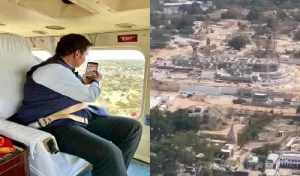 हेलीकॉप्टर उड़ान के दौरान देवेंद्र फडणवीस ने वीडियो शूट किया है। इस वीडियो को ट्विटर पर शेयर करते हुए देवेंद्र फडणवीस ने लिखा कि इस तरह अयोध्या में प्रभु श्री राम मंदिर का निर्माण कार्य चल रहा है। हेलीकॉप्टर से लखनऊ से अयोध्या के रास्ते में एरियल व्यू। जय श्री राम। महाराष्ट्र के मुख्यमंत्री एकनाथ शिंदे ने रविवार को अयोध्या पहुंचकर राम लला के दर्शन किये। इस दौरान उनके साथ महाराष्ट्र के उपमुख्यमंत्री देवेंद्र फडणवीस और कैसरगंज से भाजपा सांसद बृजभूषण शरण सिंह भी थे।
