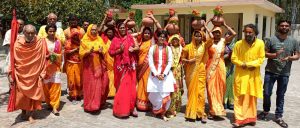 शुकतीर्थ मां बगला मुखी पीतांबरा जयंती महोत्सव के शुभारंभ पर कलश यात्रा में मौजूद संत व श्रद्धालु।
