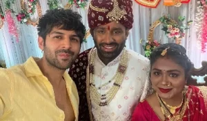 बॉलीवुड के फैन-मेड सुपरस्टार कार्तिक आर्यन एक बार फिर से अपनी सादगी की वजह से सोशल मीडिया पर चर्चा में बने हुए हैं। दरअसल, बीते दिन अभिनेता ने अपने बॉडीगार्ड सचिन की शादी में शिरकत की। इस दौरान की तस्वीरें कार्तिक ने अपने सोशल मीडिया हैंडल पर भी शेयर की। तस्वीरों के साथ कैप्शन में अभिनेता ने अपने बॉडीगार्ड और उसकी पत्नी को शादी की बधाई दी। कार्तिक ने लिखा, ‘बधाई हो, सचिन और सुरेखा, हैप्पी मैरिड लाइफ।’