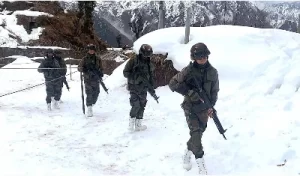जम्मू-कश्मीर के कुपवाड़ा जिले में नियंत्रण रेखा के निकट सुरक्षाबलों ने घुसपैठ की कोशिश नाकाम करते हुए दो आतंकवादियों को मुठभेड़ में मार गिराया है। श्रीनगर में रक्षा प्रवक्ता कर्नल एमरॉन मौसावी ने बताया कि कुपवाड़ा के वरिष्ठ पुलिस अधीक्षक ने खुफिया जानकारी मुहैया कराई थी कि नियंत्रण रेखा के पार से माछिल सेक्टर की ओर आतंकवादियों की घुसपैठ की कोशिश हो सकती है। इसके बाद सोमवार से ही जवानों को सतर्क कर दिया गया था। उन्होंने कहा, ‘‘इस बेहद दुर्गम तथा उबड़-खाबड़ स्थान पर घुसपैठ को रोकने के लिए समन्वित प्रबंध किए गए थे। भारतीय सेना तथा जम्मू-कश्मीर पुलिस के विशेष अभियान दल को घुसपैठ के संभावित स्थानों पर तैनात किया गया था।’’