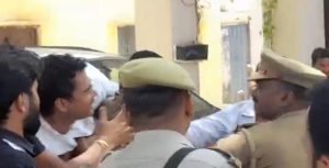 दीपक सिंह की गाड़ी को सपाइयों ने घेरा।