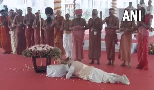 PM Modi ने सेंगोल को किया साष्टांग प्रणाम, अधीनम संतों की मौजूदगी में दिया सम्मान