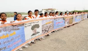Delhi: यमुना को प्रदूषण से बचाने के लिए लोगों ने नदी किनारे मानव श्रृंखला बनाई