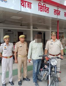थाना सिविल लाइन पुलिस द्वारा लूट के अभियोग का सफल अनावरण करते हुए 01 अभियुक्त को किया गिरफ्तार, लूटी गयी बुलेट मोटरसाइकिल, नगदी व अवैध शस्त्र मय कारतूस बरामद