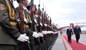 सब कुछ योजना के अनुसार चल रहा है। पुतिन ने बेलारूसी राष्ट्रपति अलेक्जेंडर लुकाशेंको से कहा जब सोची में रूसी नेता के ब्लैक सी समर रिट्रीट में वार्ता के दौरान नियोजित परमाणु तैनाती पर चर्चा की गई। पुतिन की टिप्पणियों के अनुसार प्रासंगिक सुविधाओं की तैयारी 7-8 जुलाई को समाप्त हो जाती हैऔर हम तुरंत आपके क्षेत्र में उपयुक्त प्रकार के हथियारों की तैनाती से संबंधित गतिविधियां शुरू कर देंगे।