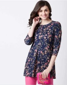 महिलाओं की ये प्रिंटेड शॉर्ट कुर्तियां बेहद खूबसूरत और शानदार हैं। यह कुर्ती विस्कोस और रेयॉन फैब्रिक से बनी है। इसका प्रिंटेड पैटर्न भी कमाल का है। यह राउंड नेक और फ्लेयर्ड पैटर्न के साथ आ रहा है। यह 3/4 स्लीव के साथ आ रहा है।